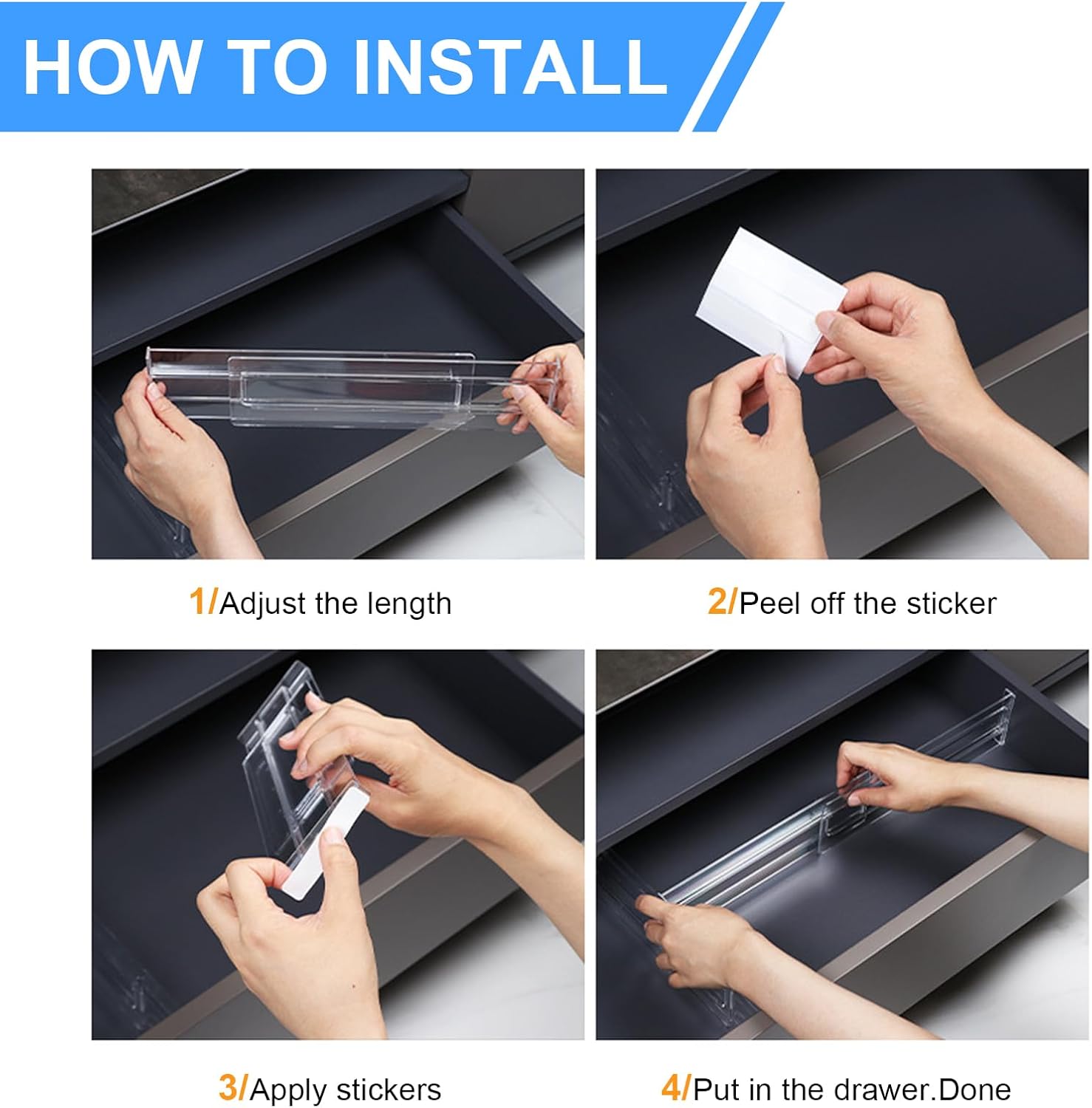 18 Pack Clear Acrylic Drawer Dividers 3.5" High,11-20" Adjustable Drawer Organizers for Clothes, Clear Plastic Separators for Dresser for Bedroom Office Kitchen Storage
